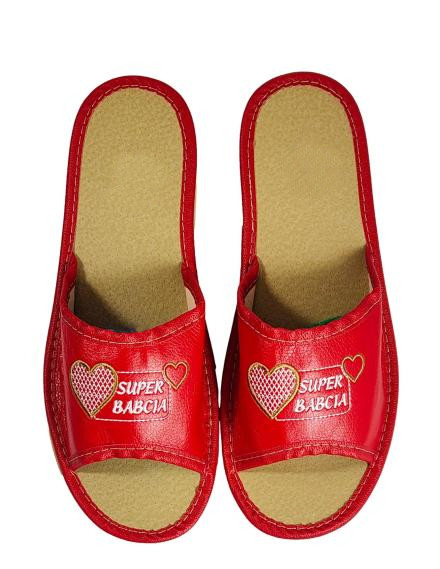Kapcie - Super Babcia rozmiar 38 (odkryte palce, czerwone)